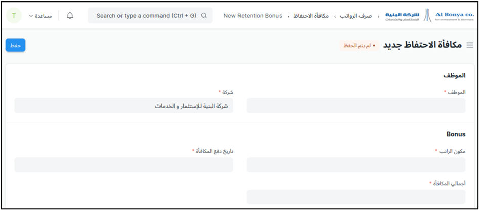 يتيح لك النظام تكوين مكافأة الاحتفاظ بالموظف لفترة معينة.