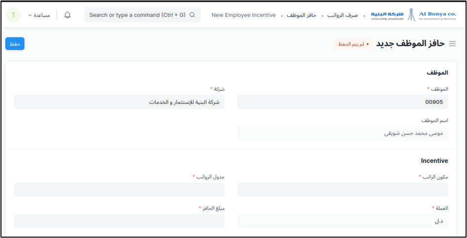 انتقل إلى قائمة حوافز الموظفين، وانقر على جديد.