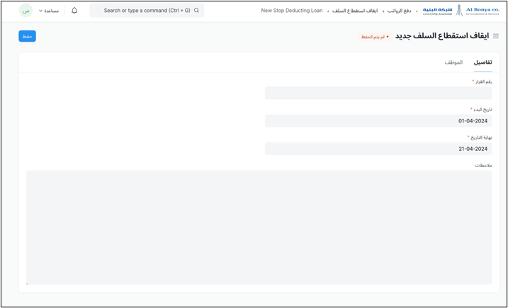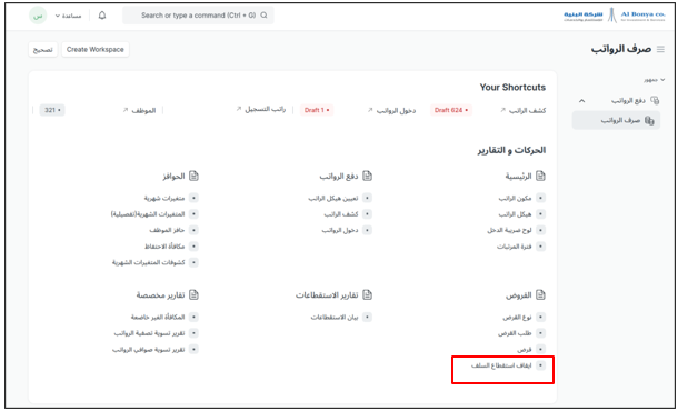 لإيقاف استقطاع أقساط السلف على الموظفين في فترة زمنية معينة يمكن اتباع التالي: