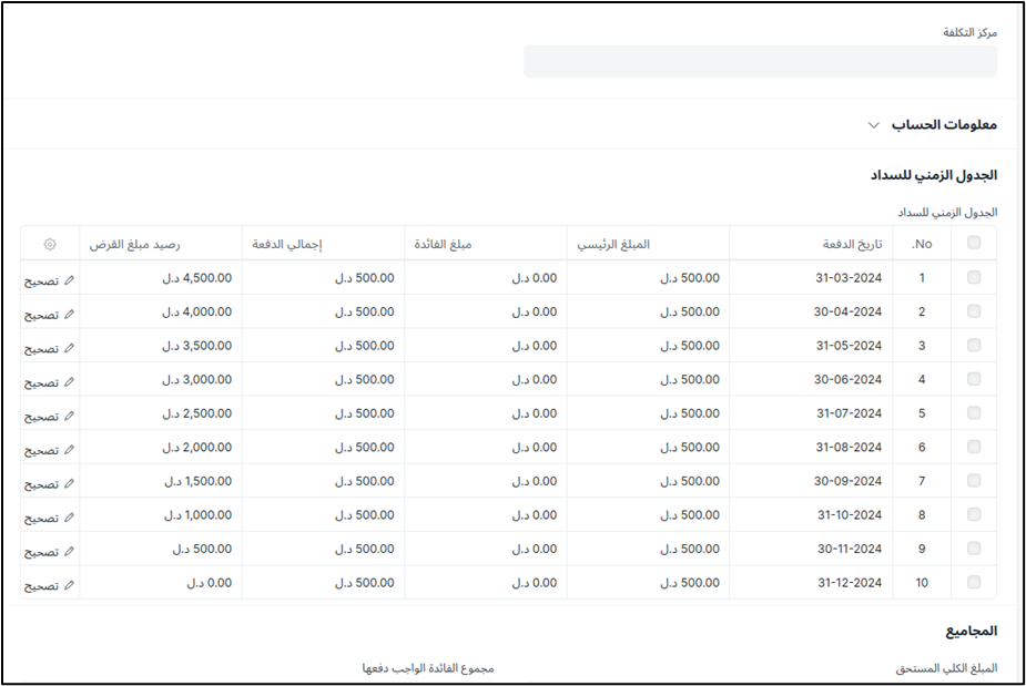 بعد تقديم المستند، يتم إنشاء جدول سداد القرض كما هو موضح أدناه:
