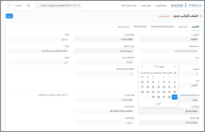 قم بتعديل التاريخ والوقت بما يتناسب مع الشهر المراد صرف الراتب فيه اضغط على حفظ