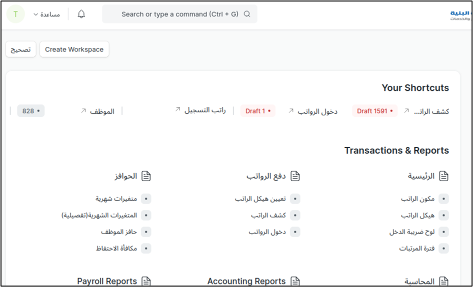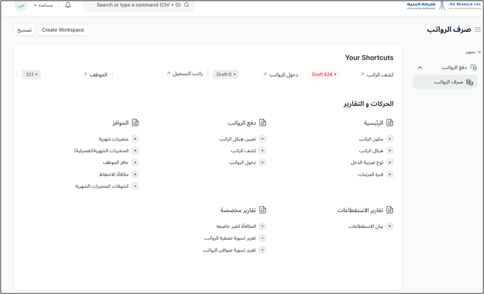 للوصول إلى إدخال كشوف المرتبات، انتقل إلى: