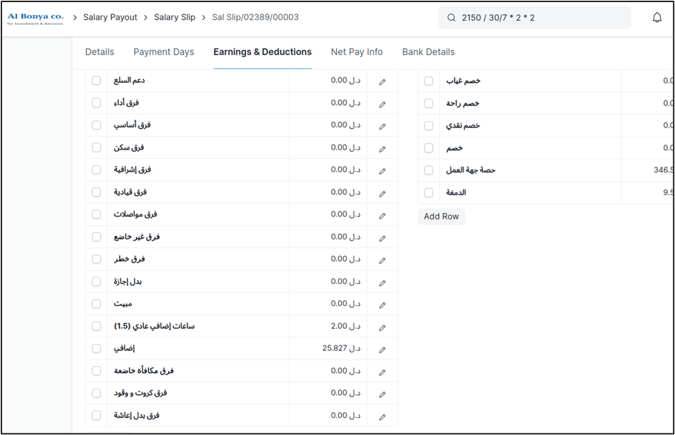 عند الحفظ والتسجيل النهائي للنموذج سوف تظهر ساعات اﻹضافي في كشف الراتب الخاص بالموظفين في الشهر المعني.